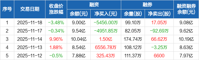 中集集团:融资净偿还5456万元,融资余额9亿元(11-18)