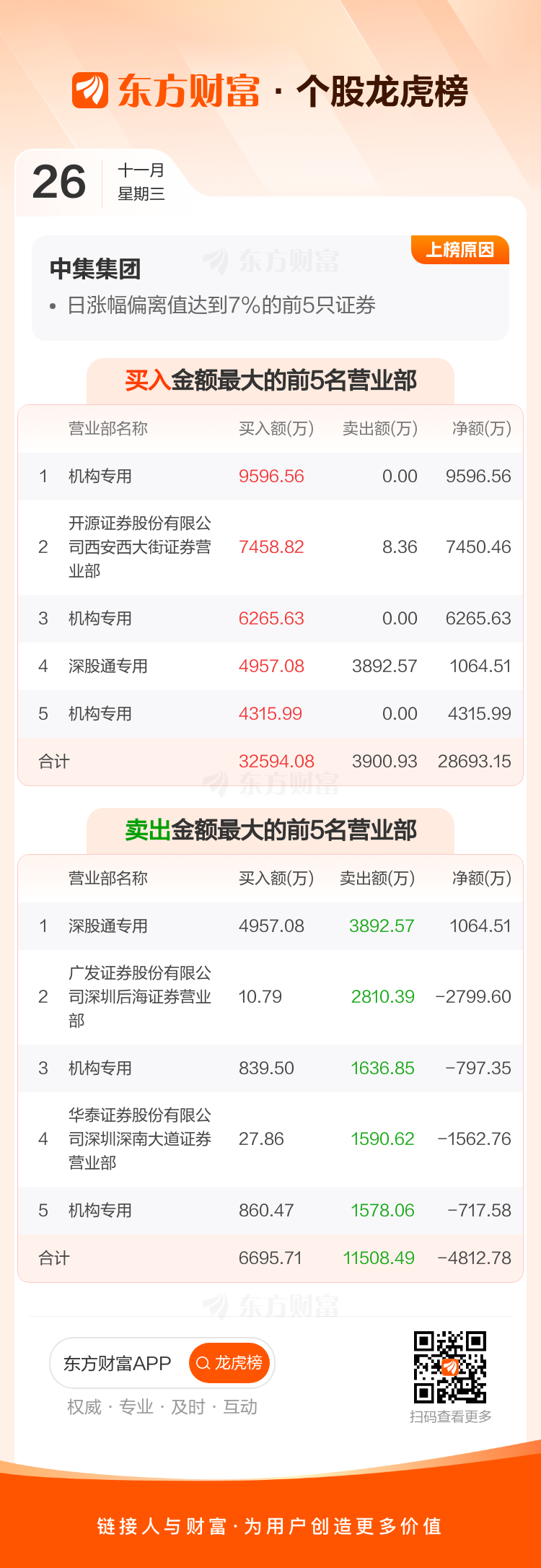 中集集团(000039)龙虎榜数据(11-26)