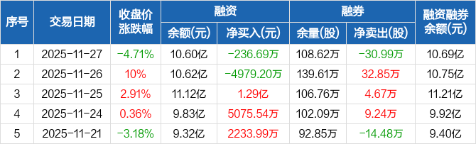 中集集团:融资净偿还236.69万元,融资余额10.6亿元(11-27)