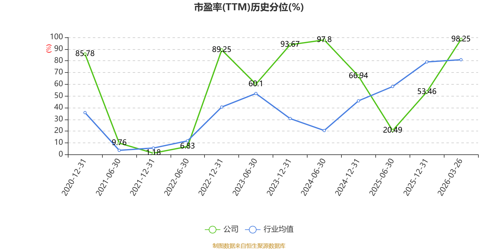 市盈率、市净率为负时,不显示当期分位数,会导致折线图中断。