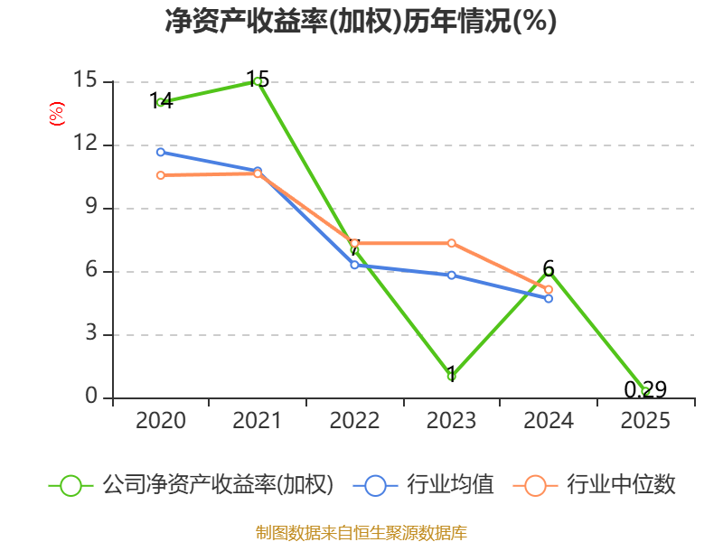 数据显示,2025年公司加权平均净资产收益率为0.29%,较上年同期下降5.71个百分点。公司2025年投入资本回报率为1.62%,较上年同期下降3.22个百分点。