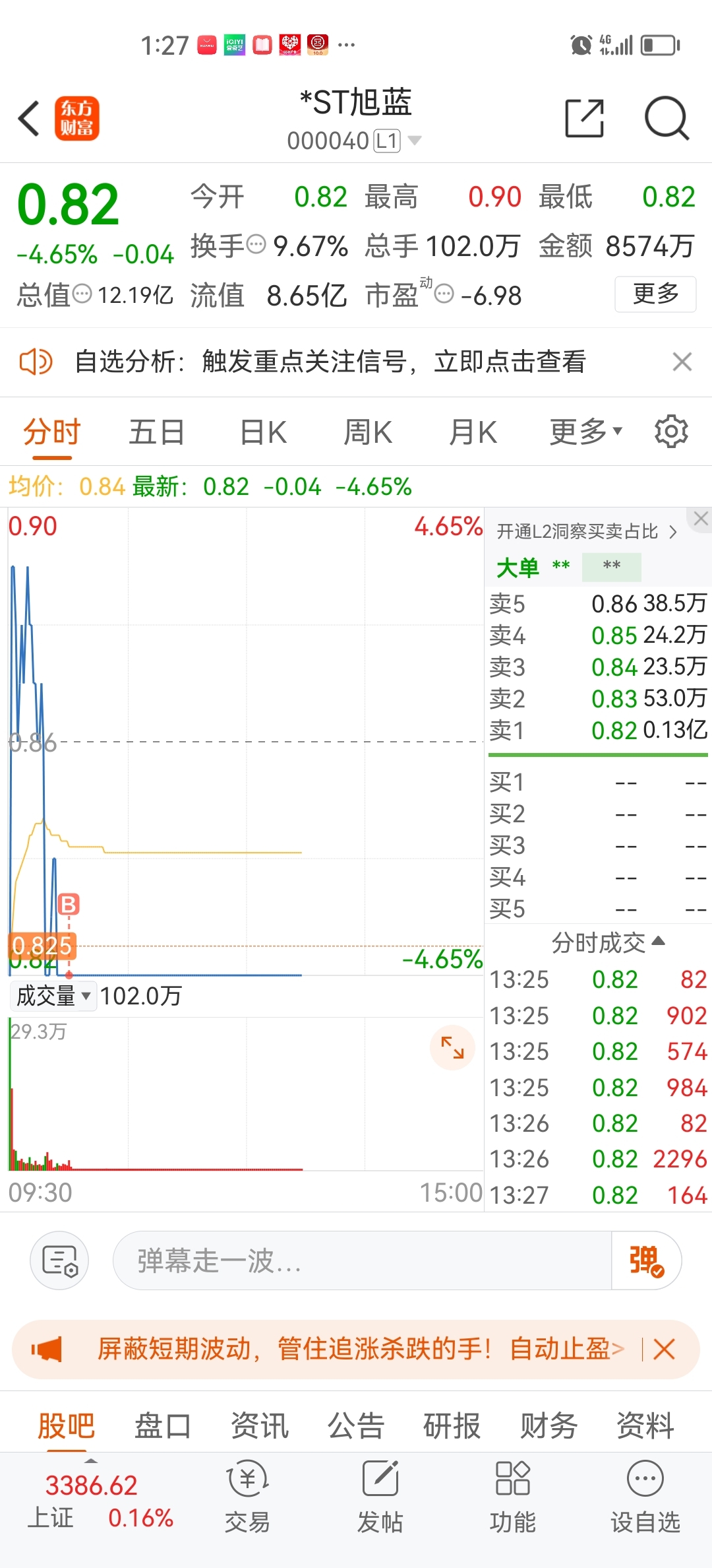 $*ST旭蓝(SZ000040)$ 买了就不后悔,富贵险中求。又不是东方那么大雷,怕啥