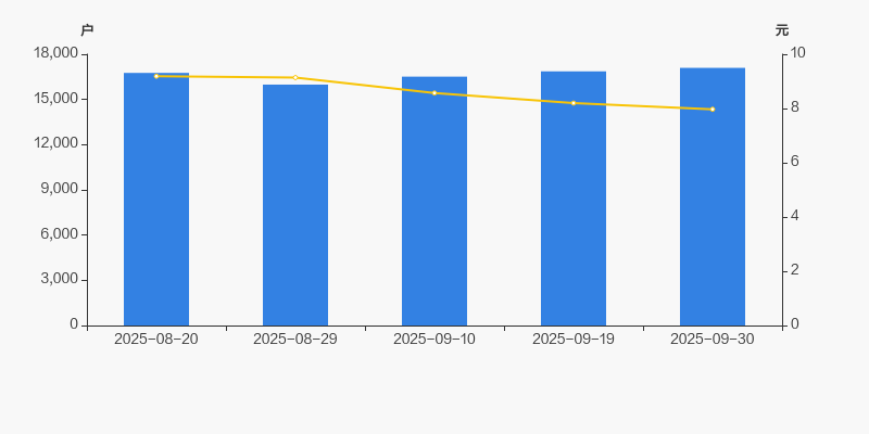 自2025年8月29日以来,公司股东户数连续3期上涨,截至目前增幅为6.95%。2025年8月29日至2025年9月30日区间股价下降12.80%。