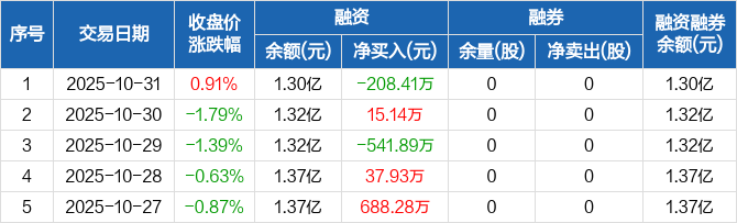 中洲控股:融资净偿还208.41万元,融资余额1.3亿元(10-31)
