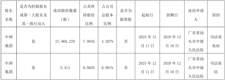 中洲控股控股股东再添司法冻结 累计近30%持股被冻