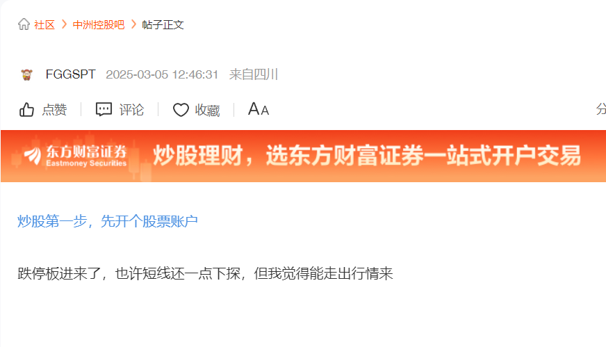 温馨提示: 1.根据《证券法》规定,禁止编造、传播虚假信息或者误导性信息,扰乱证券市场;2.用户在本社区发表的所有资料、言论等仅代表个人观点,与本网站立场无关,不对您构成任何投资建议。用户应基于自己的独立判断,自行决定证券投资并承担相应风险。《东方财富社区管理规定》