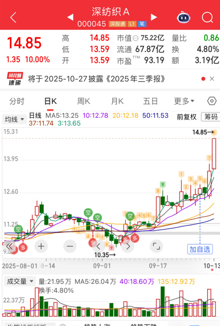 $深纺织A(SZ000045)$ 很标准的N字,热点新凯来图好,风到自然动了,得需要耐心
