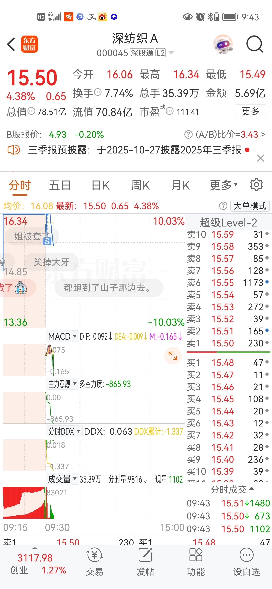 $深纺织A(SZ000045)$ 涨停跑了!卖点还可以吧?