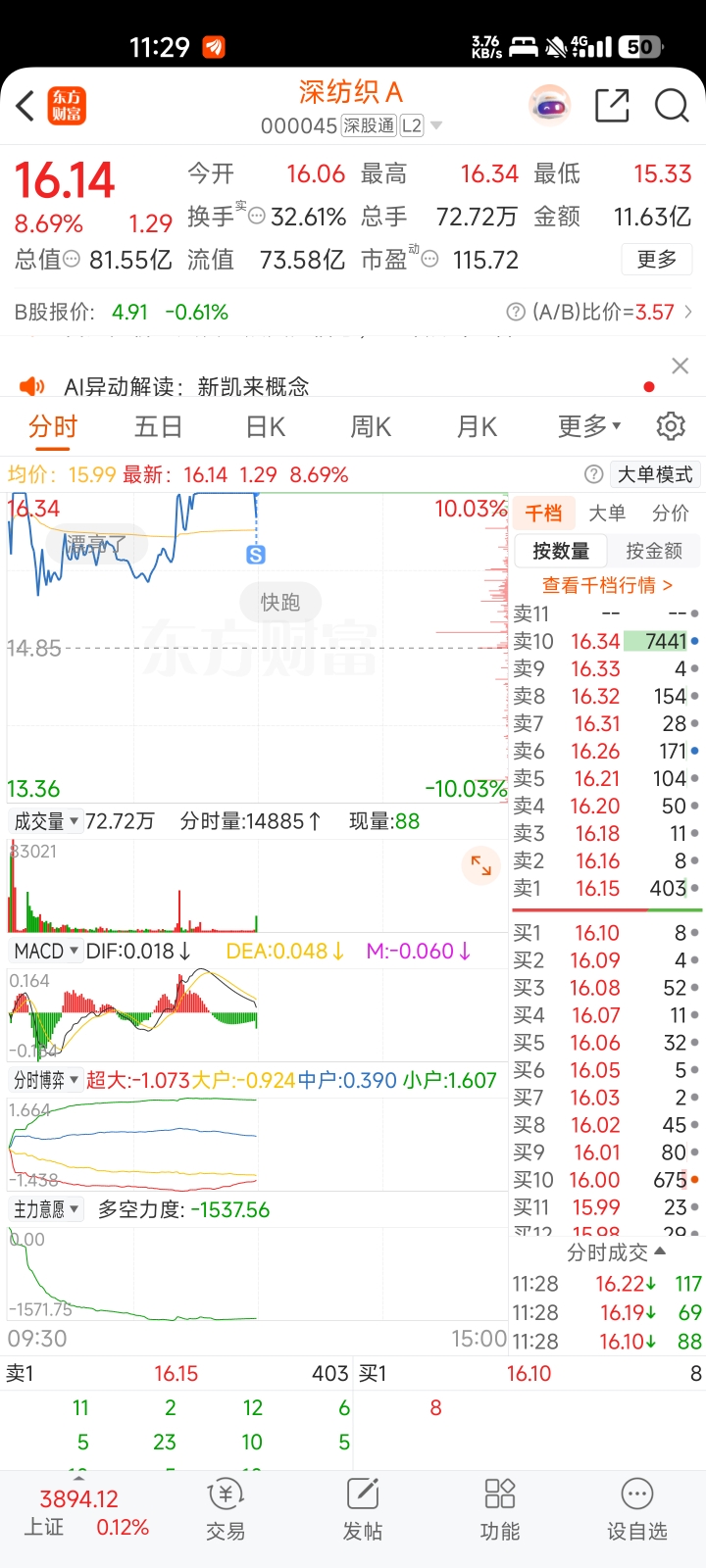 $深纺织A(SZ000045)$ 家人们,我先跑了封单太少了,明天和亚世卡三板估计也是si路一条
