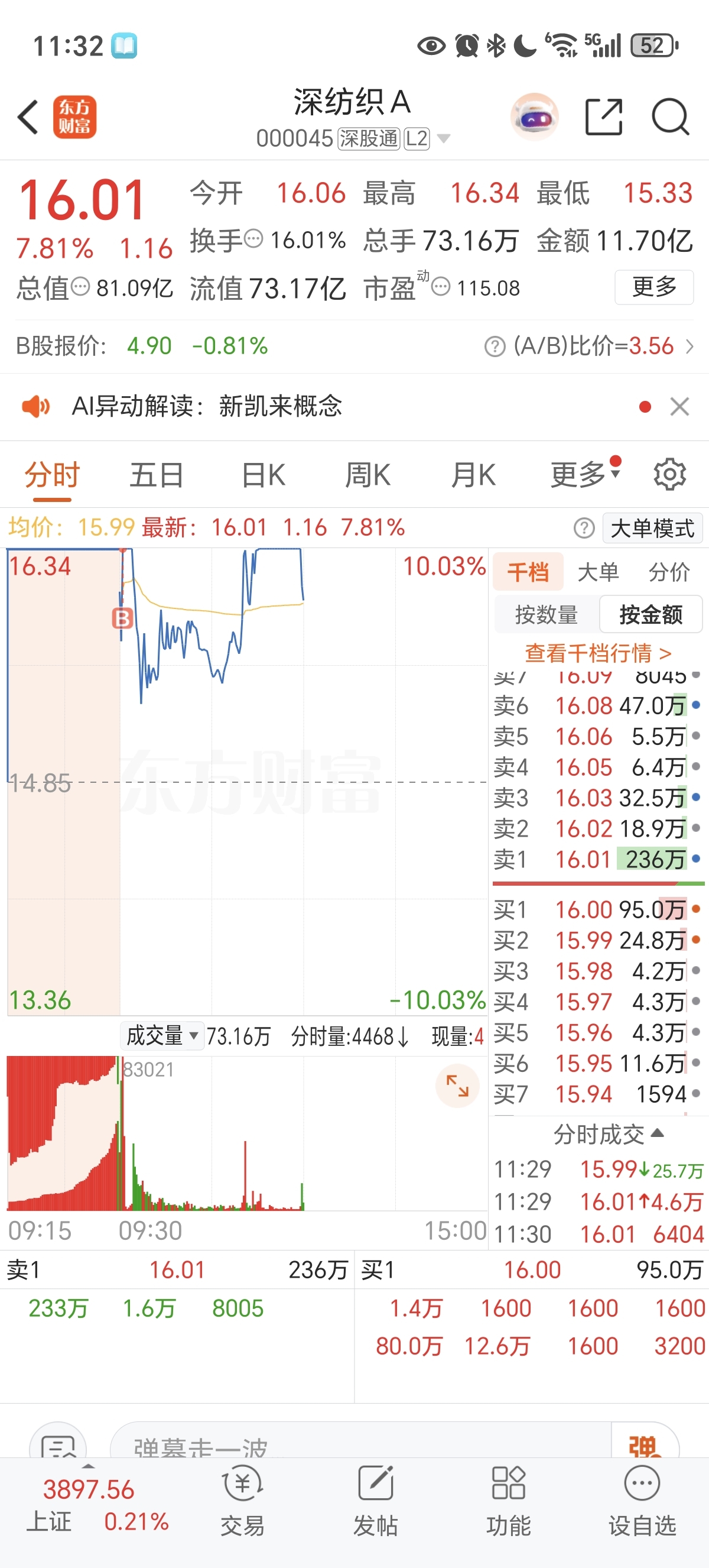 $深纺织A(SZ000045)$ 怎么又炸板,这把打的心脏通通跳,下午能不能封回去