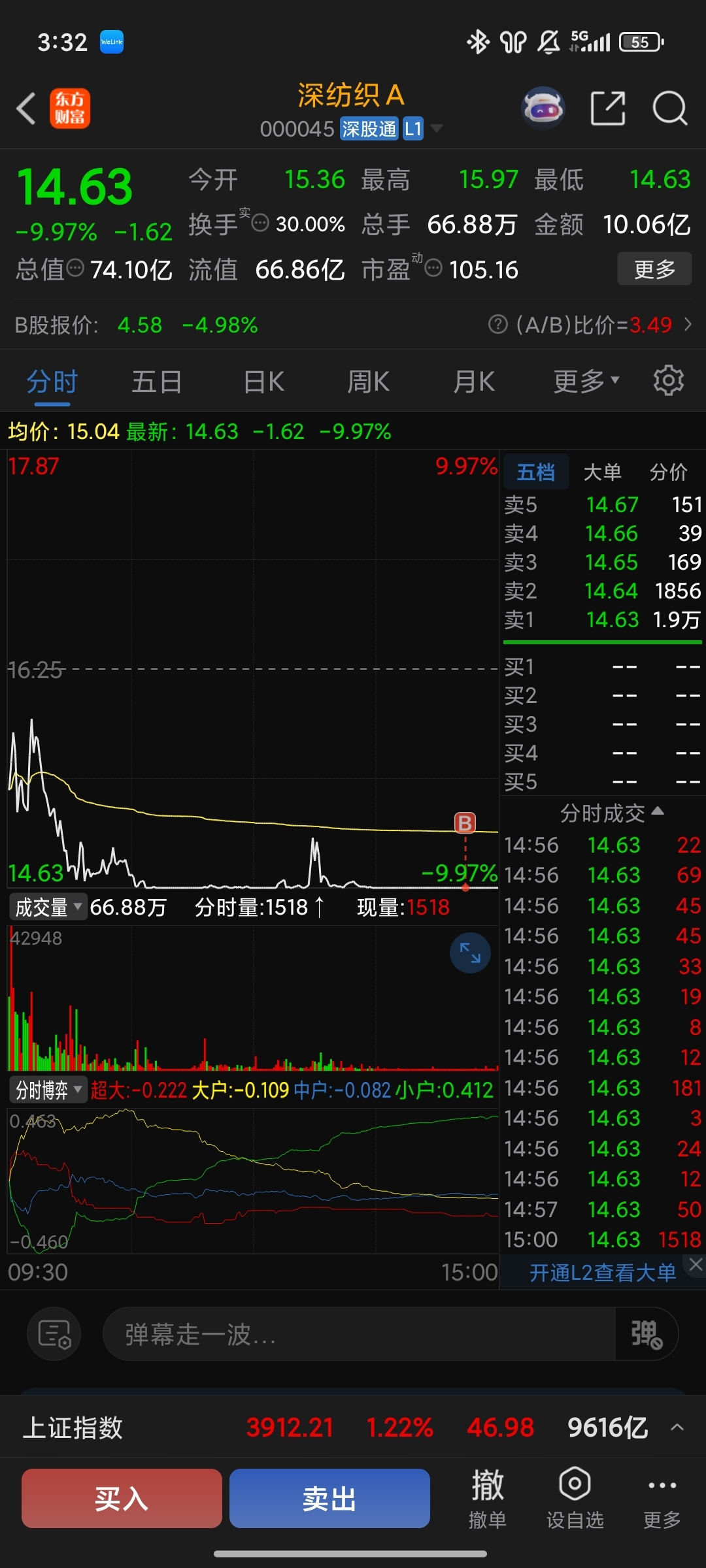 $深纺织A(SZ000045)$ 你们不看好我看好,昨天就看出妖气,结果今天任性跌停,够妖