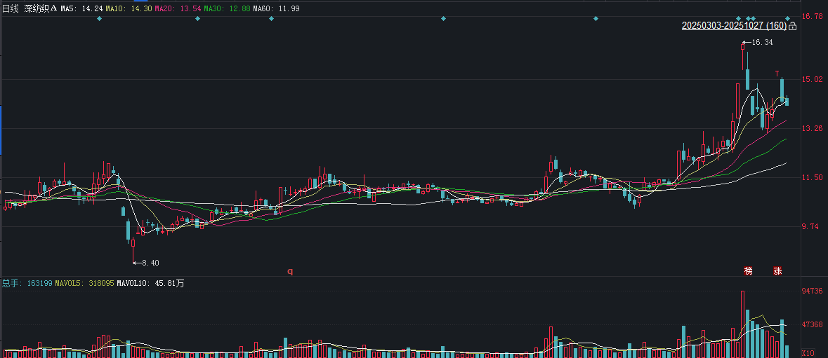 二级市场上,截至27日10点30分,深纺织A下跌1.06%报14.04元/股,总市值约71亿元,今年来公司股价累计上涨超三成。