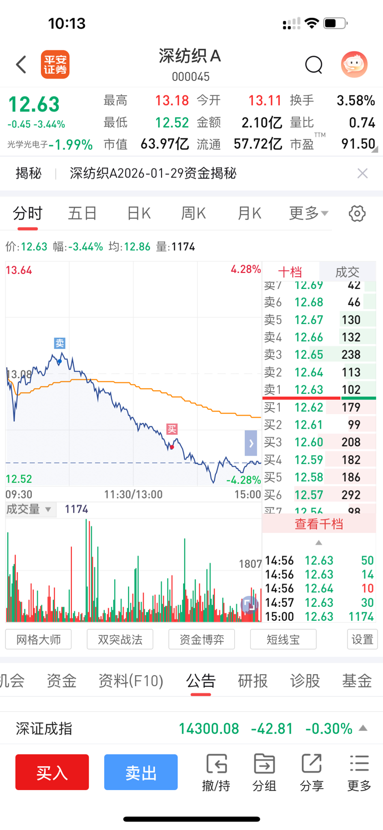 $深纺织A(SZ000045)$ 这票,今天不T这么一下,就亏大了!真亏大了!对付庄家,就要预判他的预判!