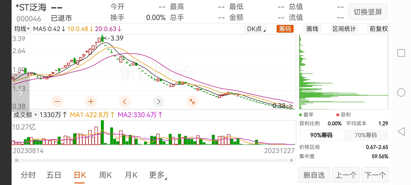 $*ST泛海(SZ000046)$ $*ST东易(SZ002713)$ $*ST万方(SZ000638)$ 前有万方天地板,后有东易天地板,二者都是集合竞价涨停诱多!后悔今天下午买东易了,明天肯定大低开或一字板!东易明天要是再跌停就走出了泛海的走势,多杀多!今天的多头就是明天的空头!