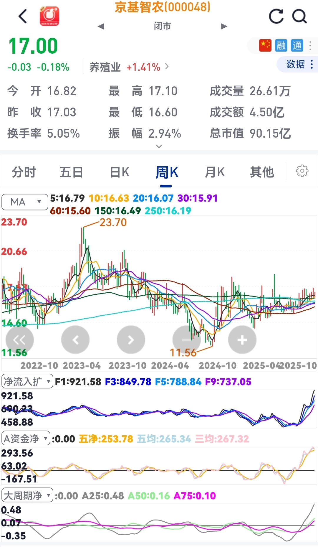 $京基智农(SZ000048)$ 公司发减持公告配合庄吸筹,老套路了,给你们看两张图。跟岱美股份启动前的资金流入形态一模一样的。