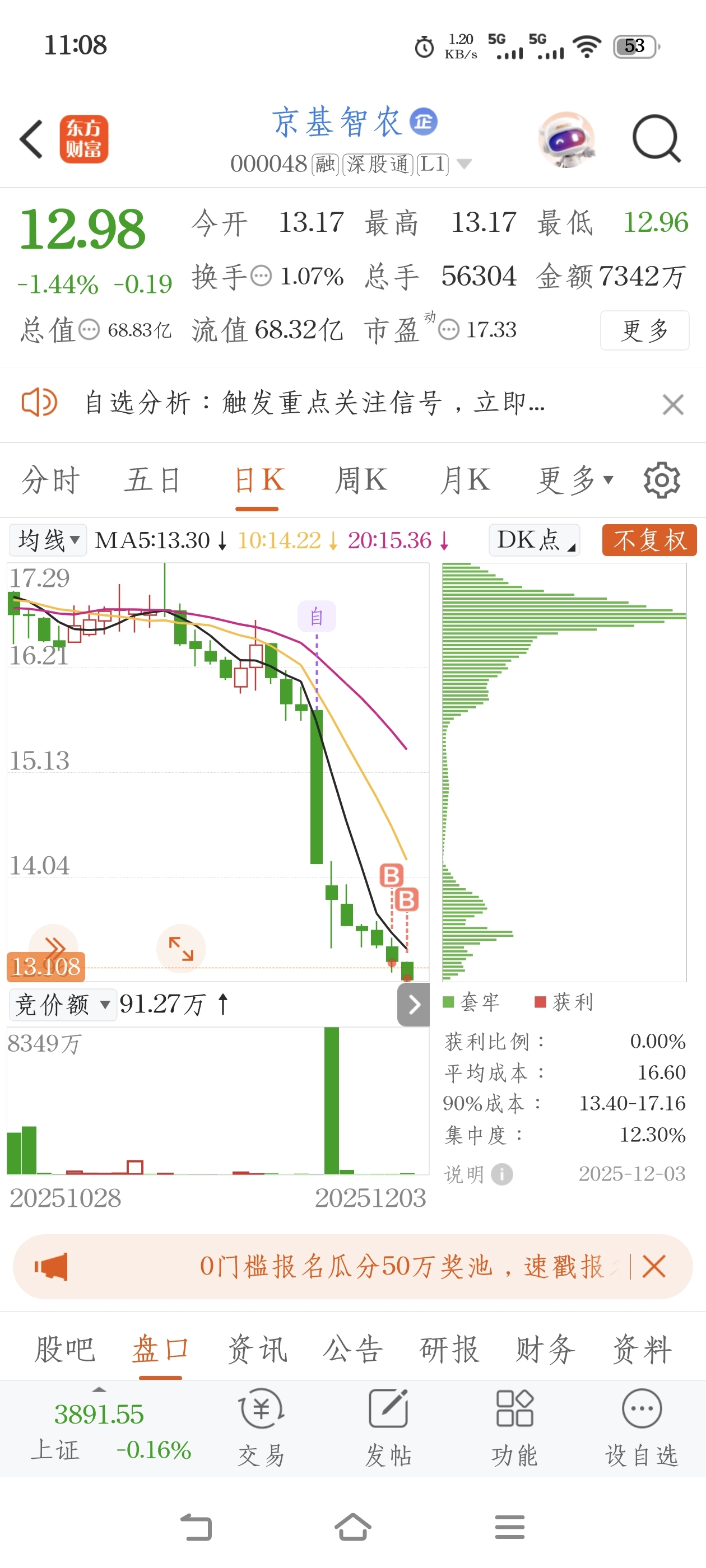 $京基智农(SZ000048)$ 昨天买了20万,今天加仓10万,明天再跌再加仓10万。
