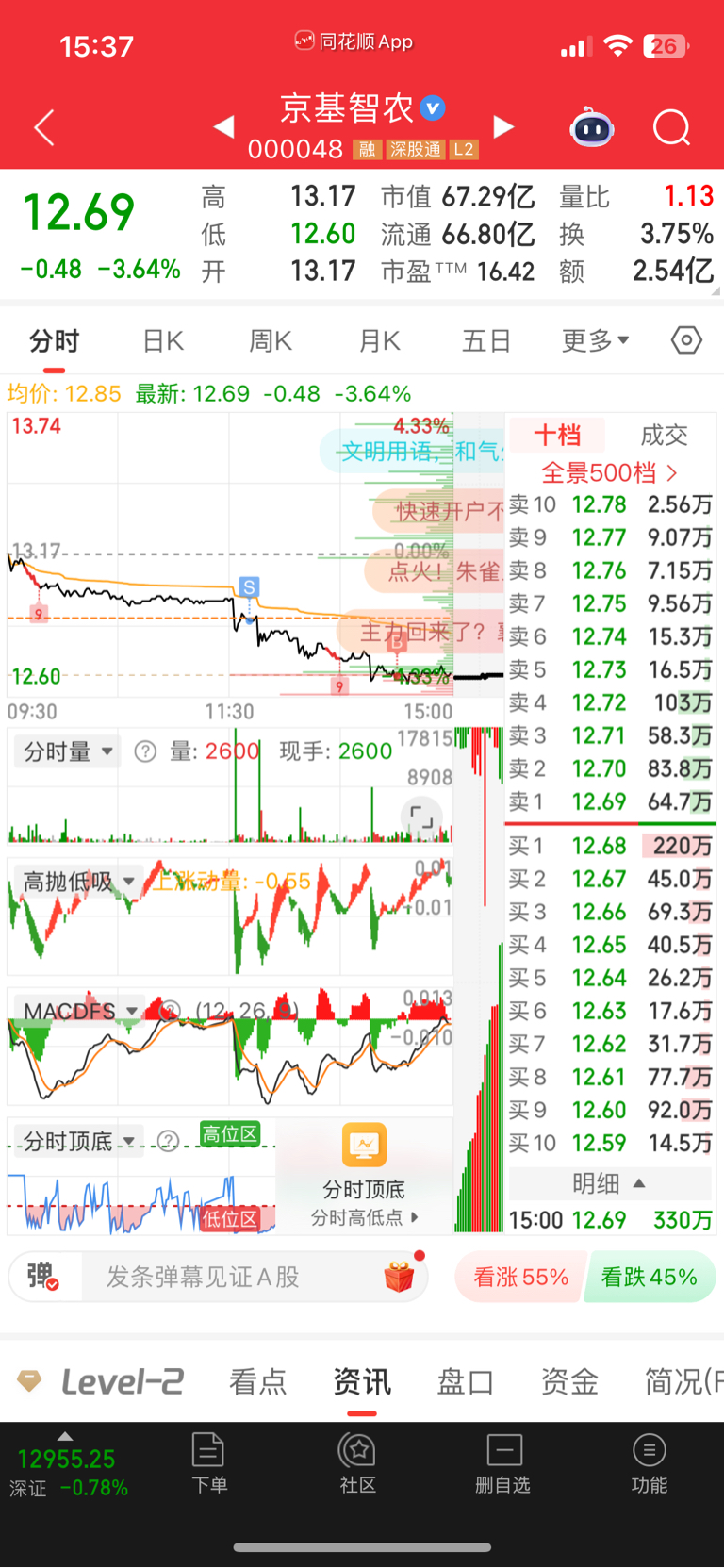 $京基智农(SZ000048)$ 做了个T,服了越补越深