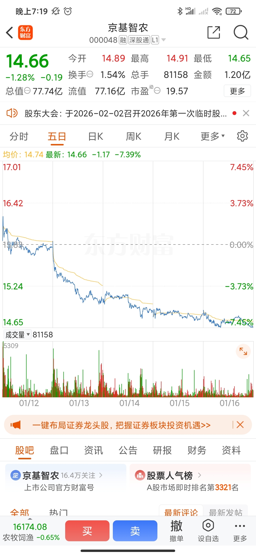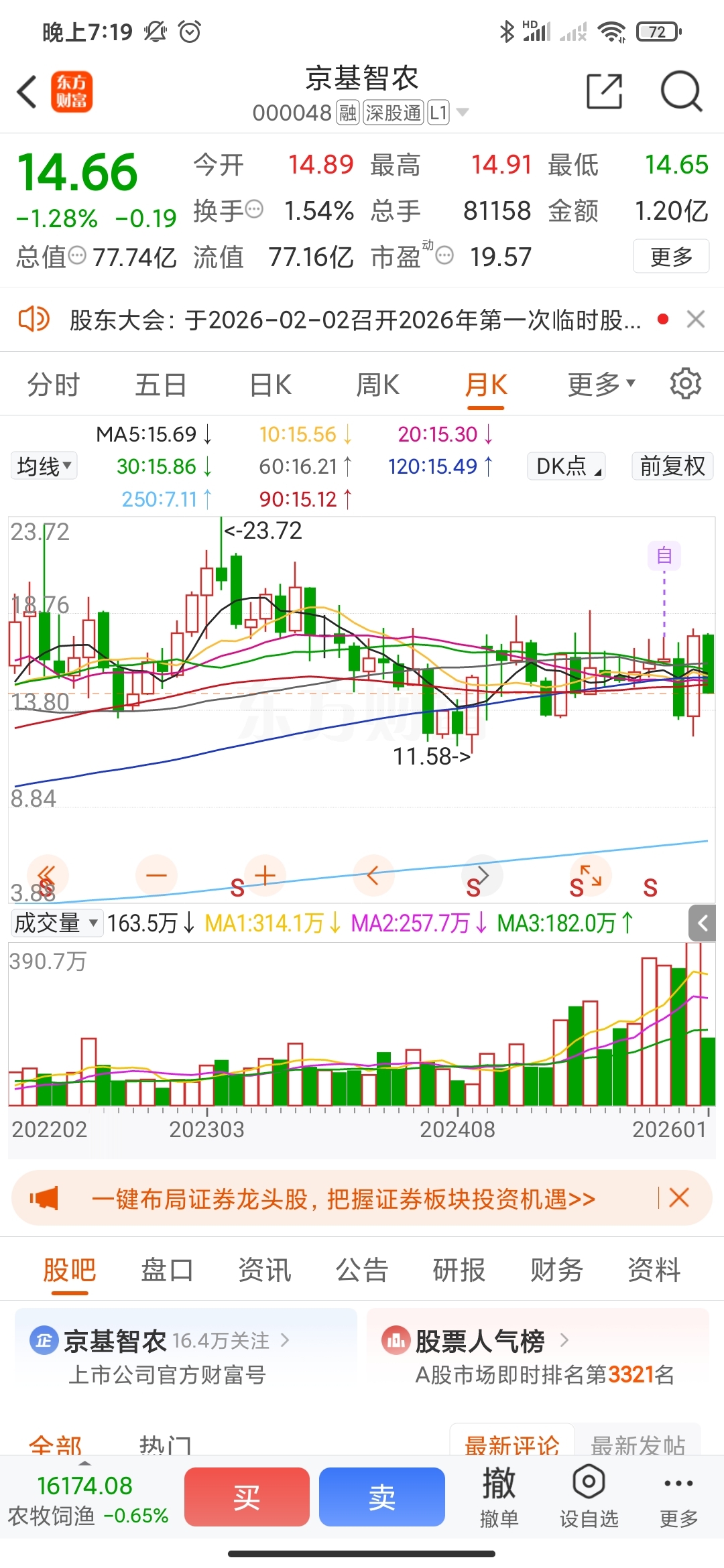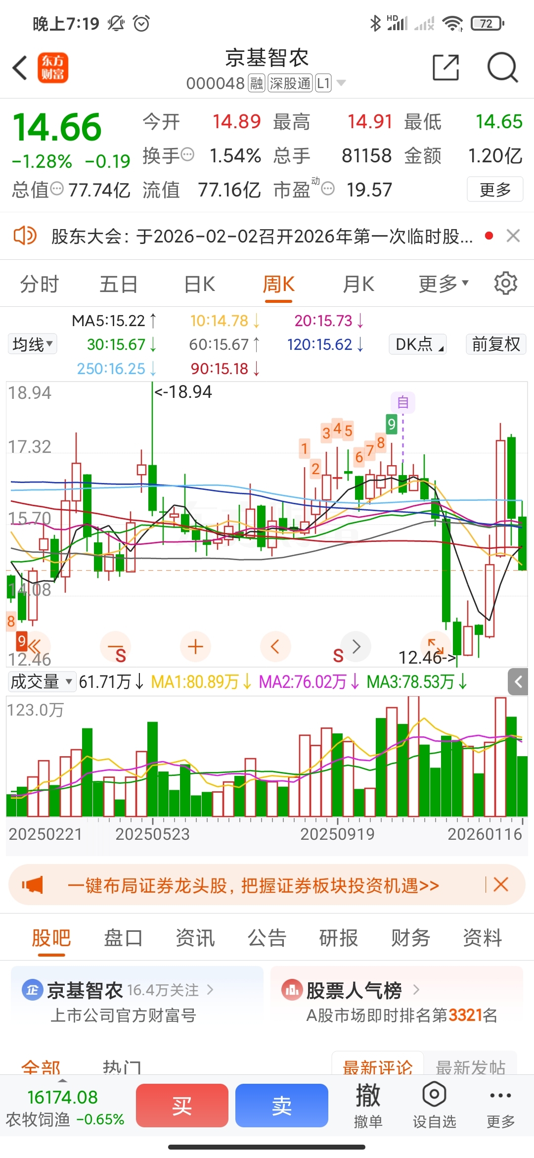 $京基智农(SZ000048)$ 技术性回调