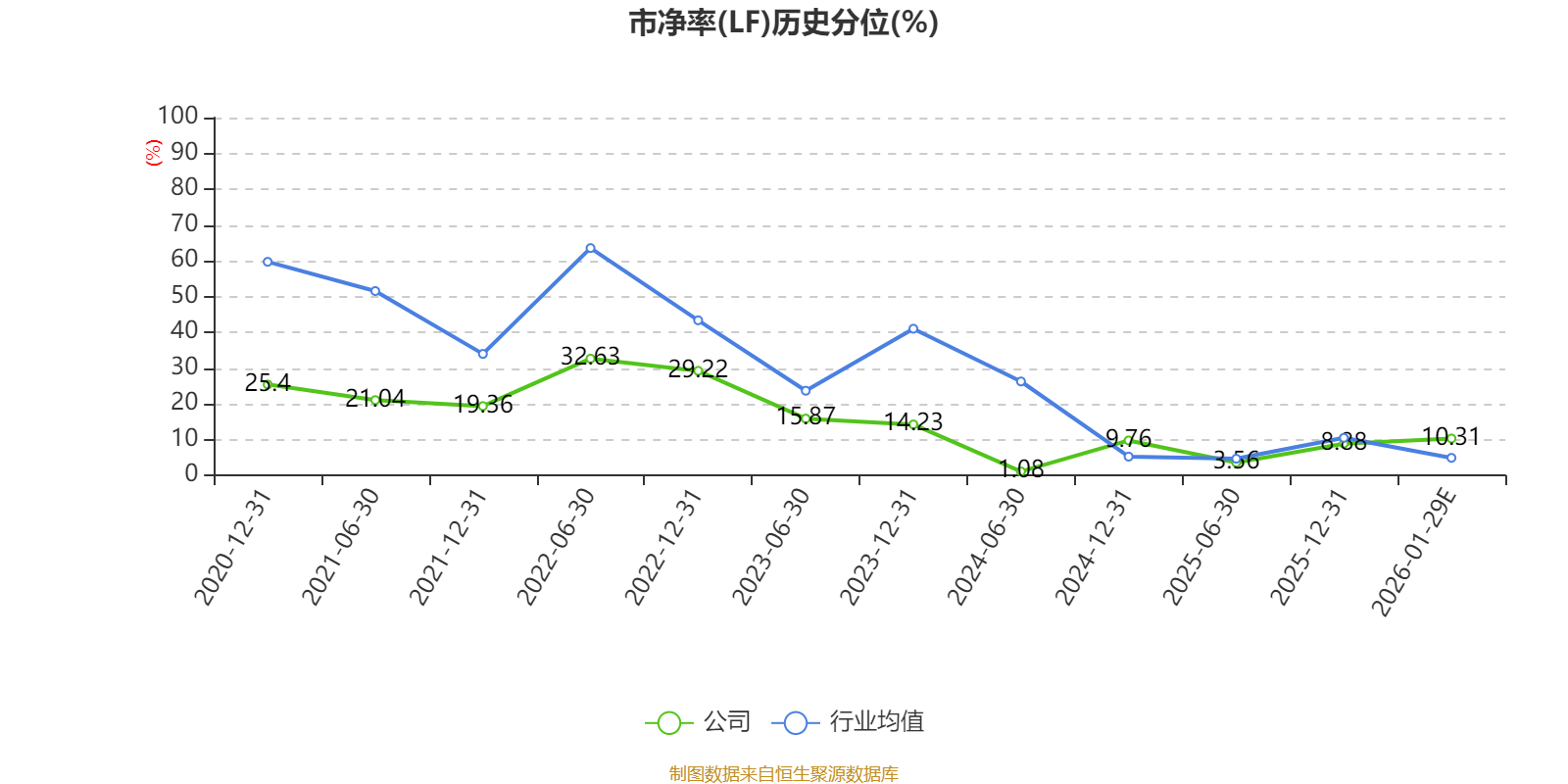 市盈率、市净率为负时,不显示当期分位数,会导致折线图中断。