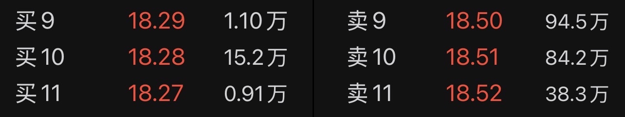 心累,刚才吃掉了18.50的挂单,但是没继续上攻,现在股价下来后,又在18.50