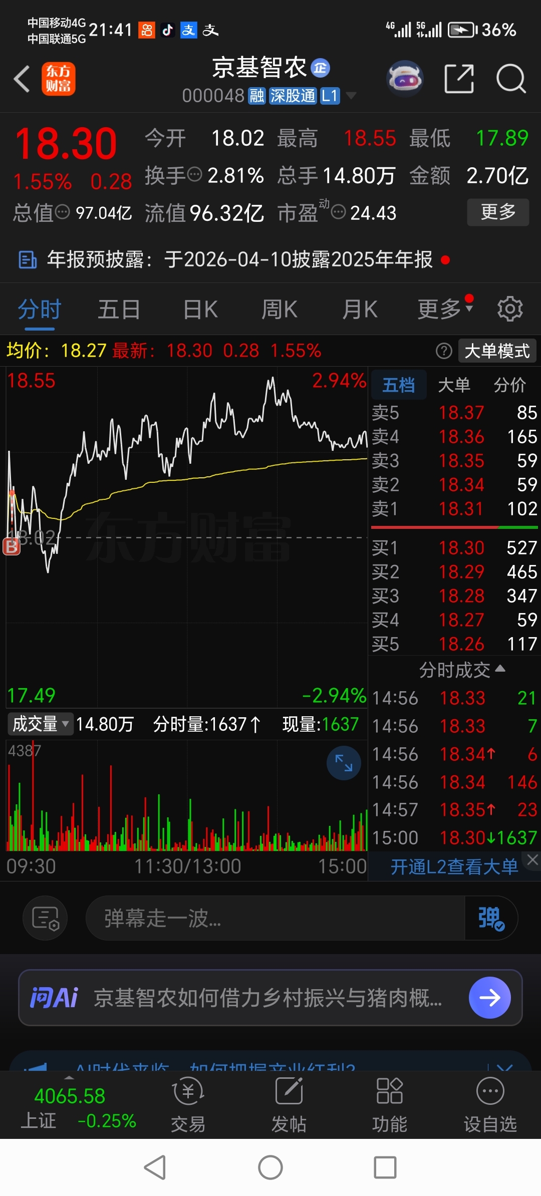 $京基智农(SZ000048)$ 今天这操作总的还算满意,茂业昨天打板成功,今天集合竞价一看情况不对啊,得跑啊,马上集合竞价挂单,出的及时,换成京基比较稳当,要求不高能吃点小肉就行,搏他一根大阳线,现在行情不稳定还是得控制风险!