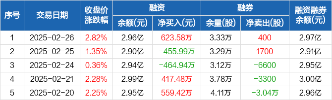 德赛电池:融资净买入623.58万元,融资余额2.96亿元(02-26)