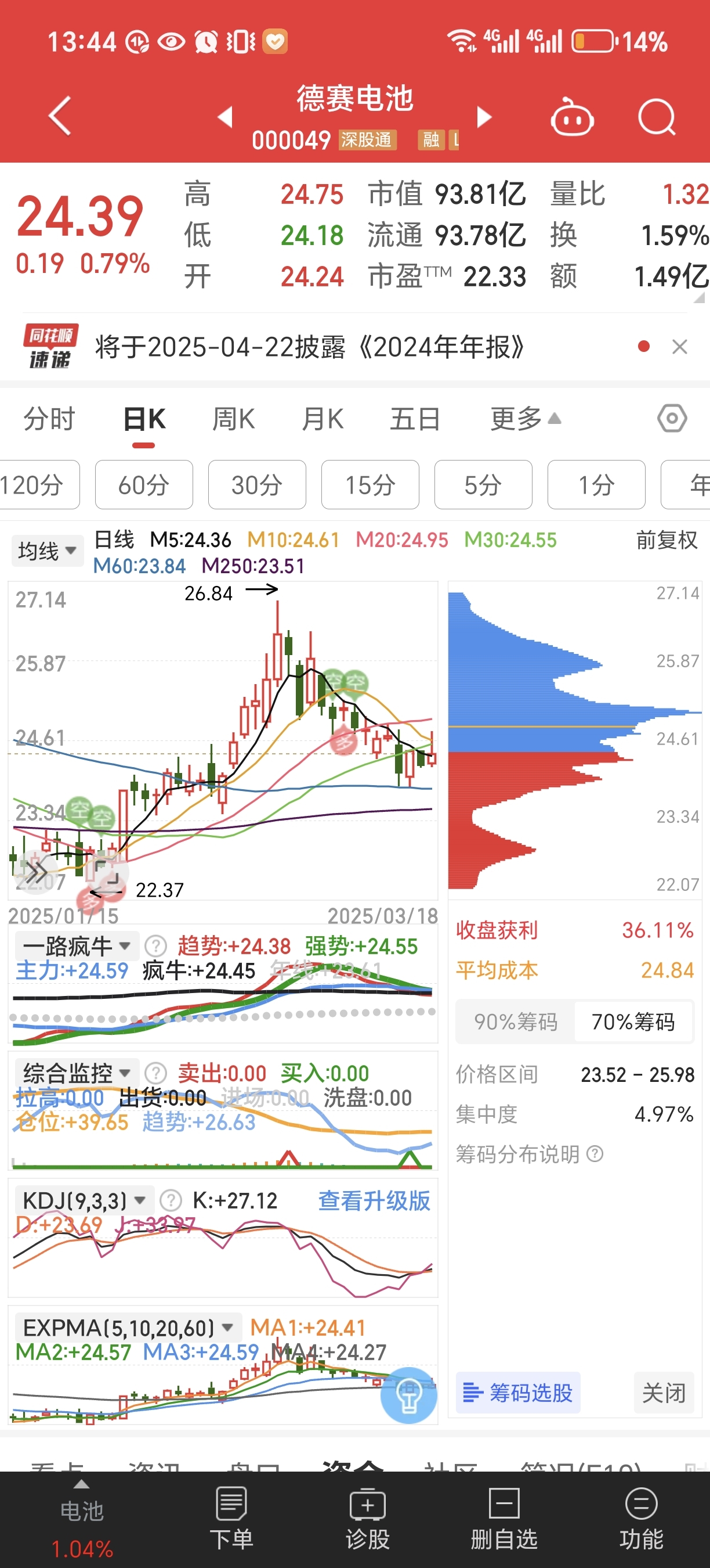 $德赛电池(SZ000049)$ 同花顺说这股还没企稳需等