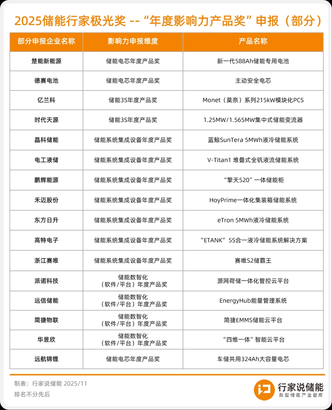 2025储能行家极光奖特设“年度影响力产品奖”,旨在发掘并表彰那些具备技术创新性
