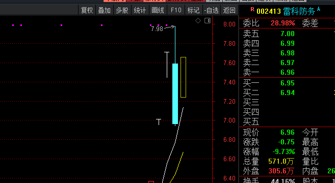 $雷科防务(SZ002413)$T字后刹大阴,老秦为何在尾盘介入它,因为目前的连板高度被压制在了4板,而4板的两只分别是大消费和医药,继续打高度的概率不大,那么一旦推倒重来,处于半空中的票就有反包选项,用N+1的方式拓展。其实昨天的国盛科技正是这种空中加油的走法。另外商业航天这几天都有盘中动作,不排除周末有进一步的消息刺激,博一下也未尝不可。