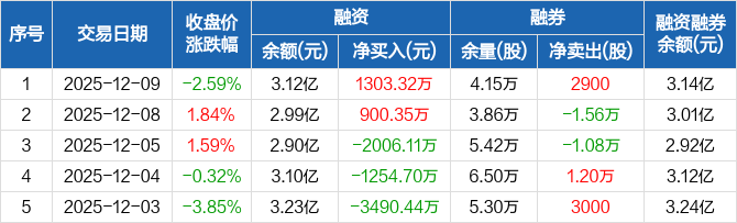 德赛电池:融资净买入1303.32万元,融资余额3.12亿元(12-09)