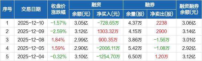 德赛电池:融资净偿还728.65万元,融资余额3.05亿元(12-10)