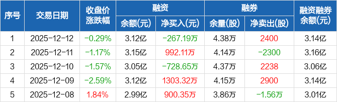 德赛电池:融资净偿还267.19万元,融资余额3.12亿元(12-12)