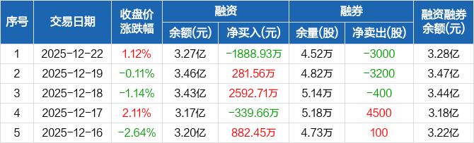 德赛电池:融资净偿还1888.93万元,融资余额3.27亿元(12-22)