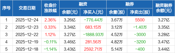 德赛电池:融资净偿还776.44万元,融资余额3.26亿元(12-24)
