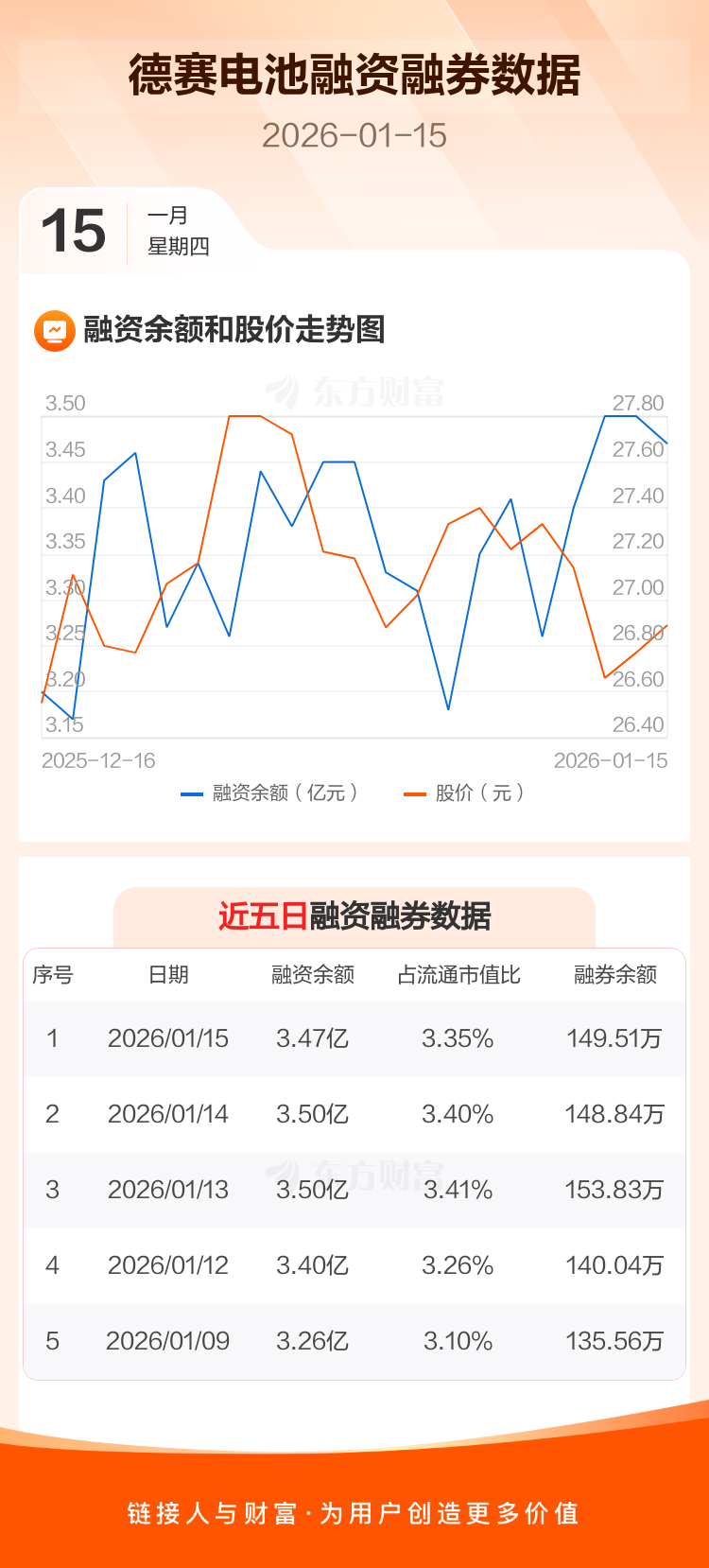 交易所最新数据显示,德赛电池于2026年1月15日获融资买入1997.65万元,融资偿还2385.48万元,当日融资净偿还387.83万元。目前,该股融资余额3.47亿,占流通市值比例为3.35%。