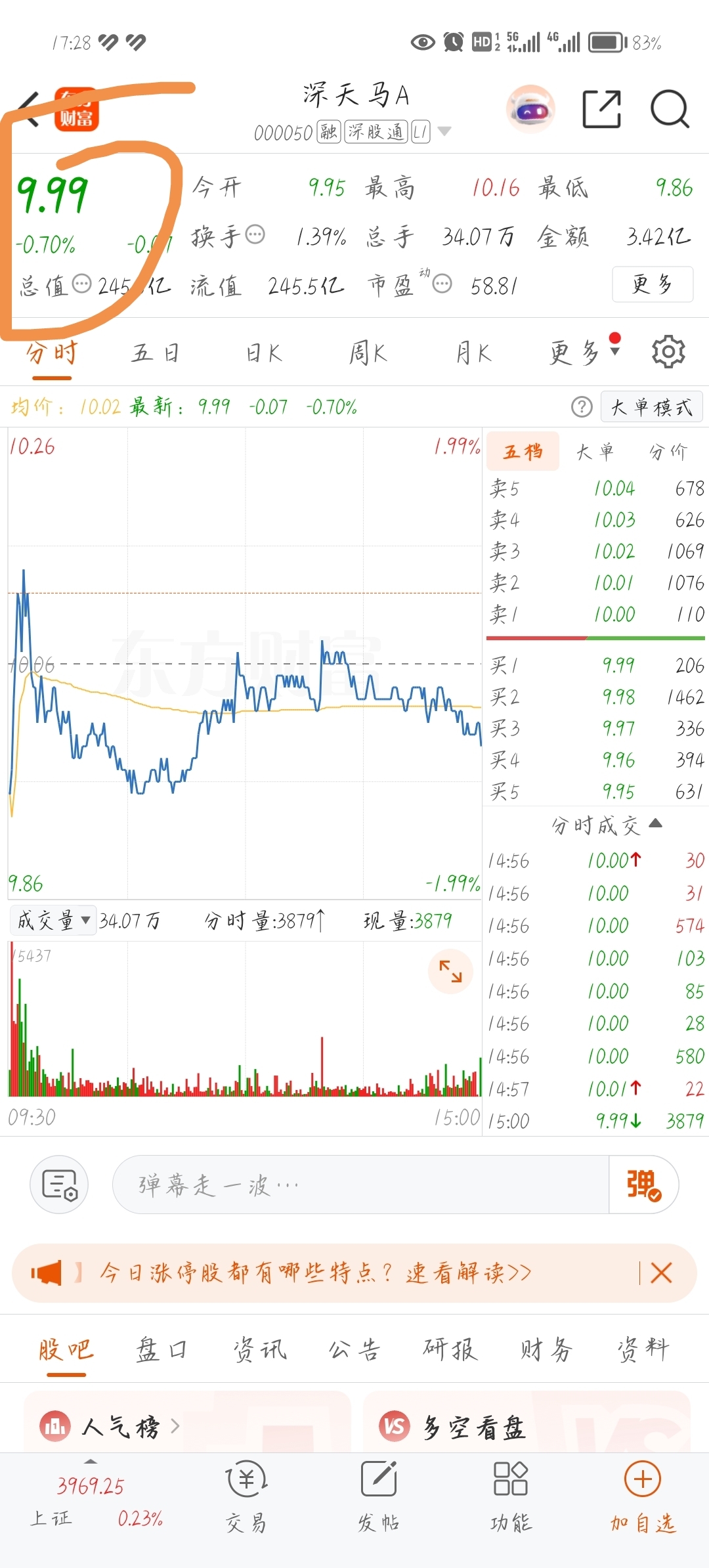 $深天马A(SZ000050)$ 999这个寓意很强!三九开泰!明日10厘米!