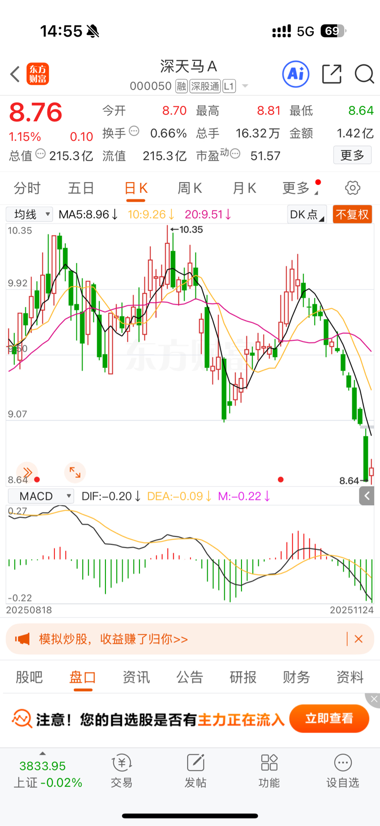 $深天马A(SZ000050)$ 年初大跌反弹到现在连续十几连跌,没有之一的拉基