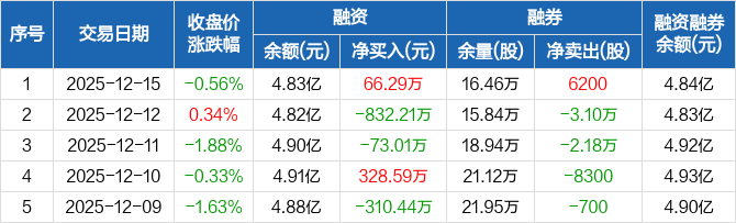 深天马A:融资净买入66.29万元,融资余额4.83亿元(12-15)