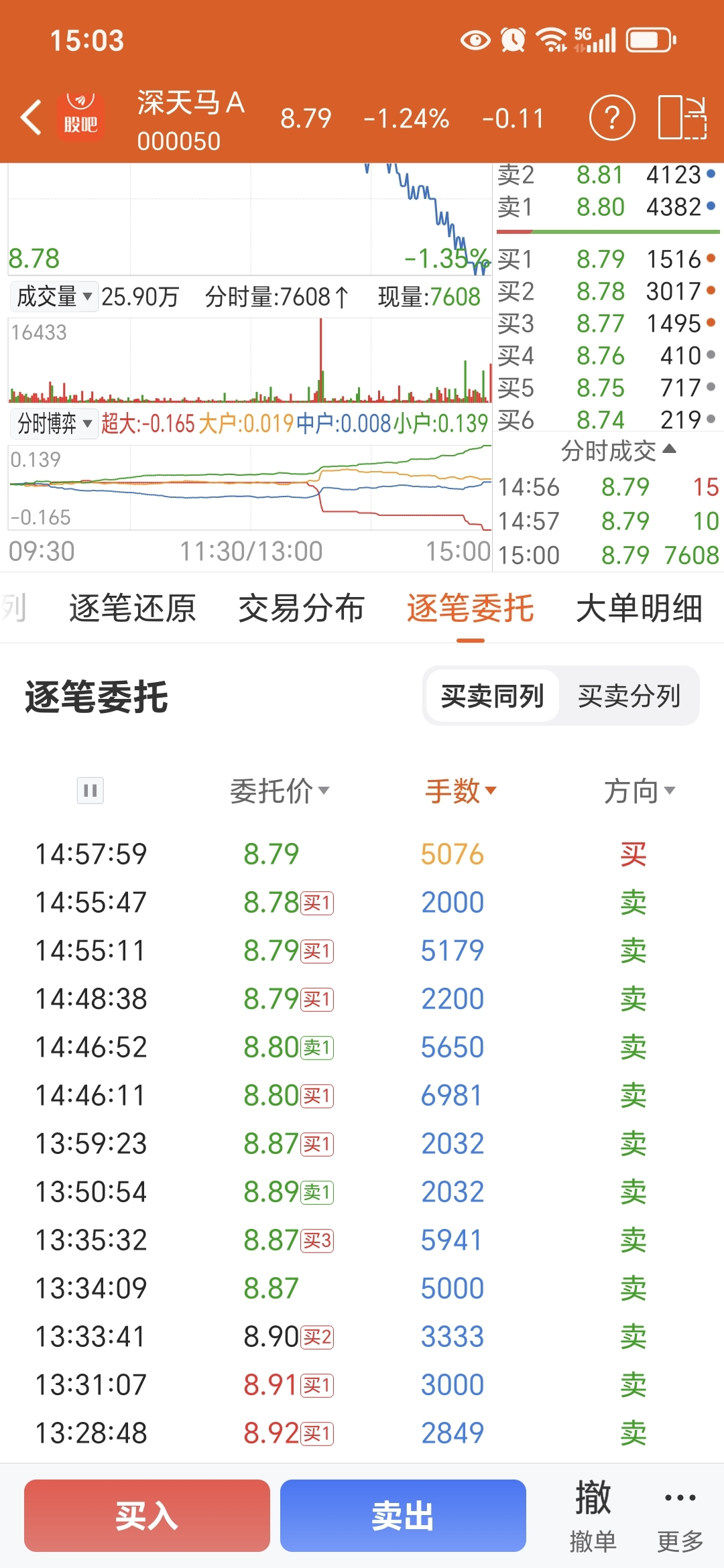 $深天马A(SZ000050)$ 下午大盘指数没有跳水,但天马下午不断的有大单出来砸盘,这是什么情况?