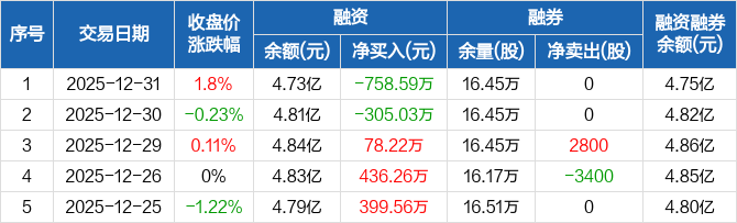 深天马A:融资净偿还758.59万元,融资余额4.73亿元(12-31)