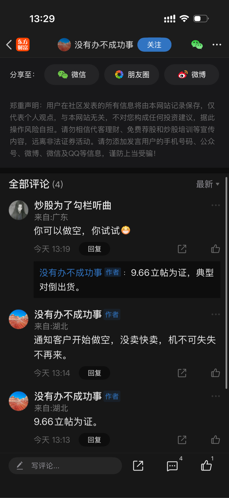 温馨提示: 1.根据《证券法》规定,禁止编造、传播虚假信息或者误导性信息,扰乱证券市场;2.用户在本社区发表的所有资料、言论等仅代表个人观点,与本网站立场无关,不对您构成任何投资建议。用户应基于自己的独立判断,自行决定证券投资并承担相应风险。《东方财富社区管理规定》