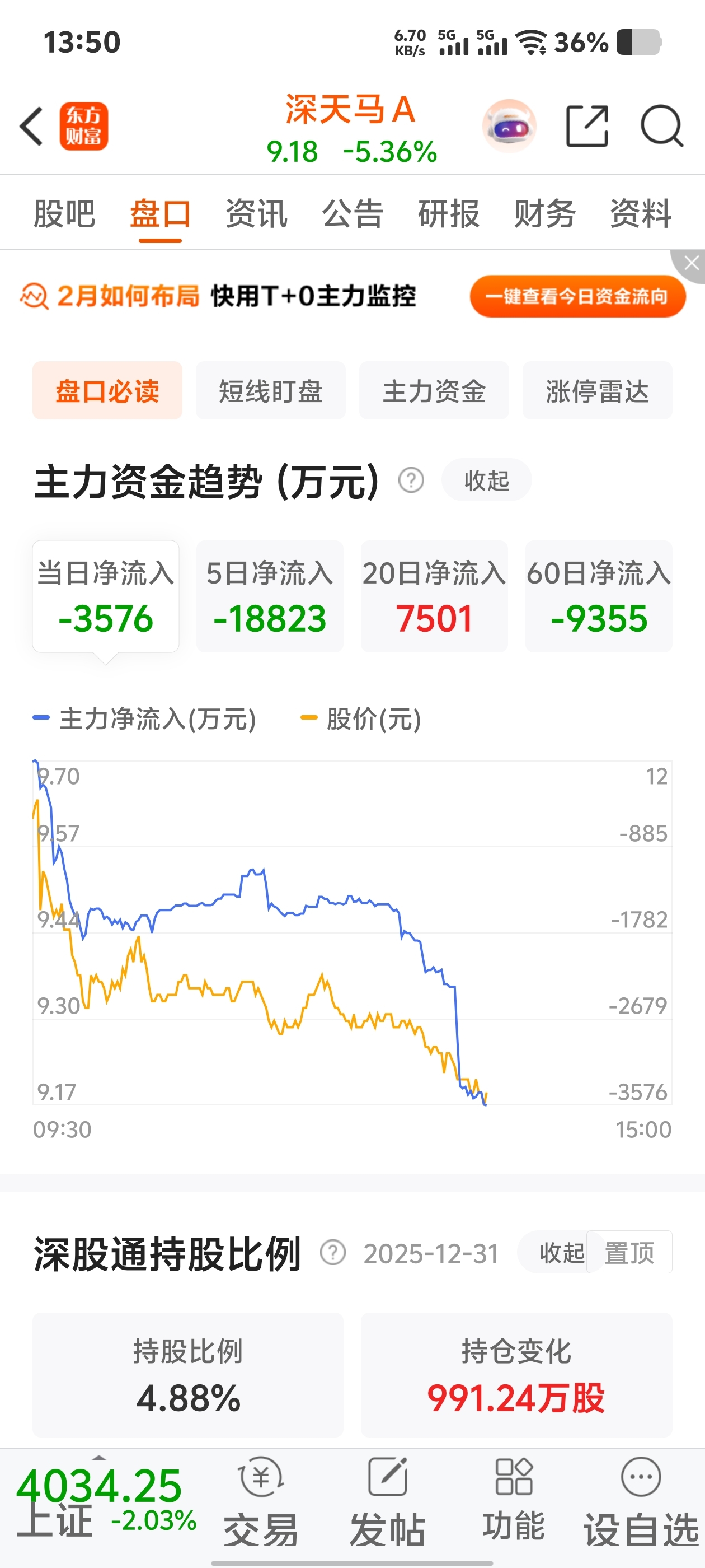 $深天马A(SZ000050)$ 5天跑了一亿九千万左右