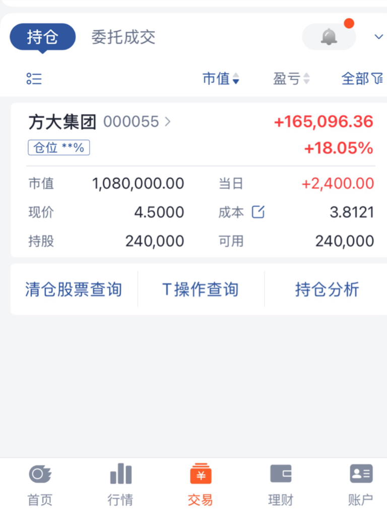 $方大集团(SZ000055)$ 持有3年多,4块以下随便买,4.5以上随便卖,跑赢CPI即可,梦想翻倍的行情都不切实际。