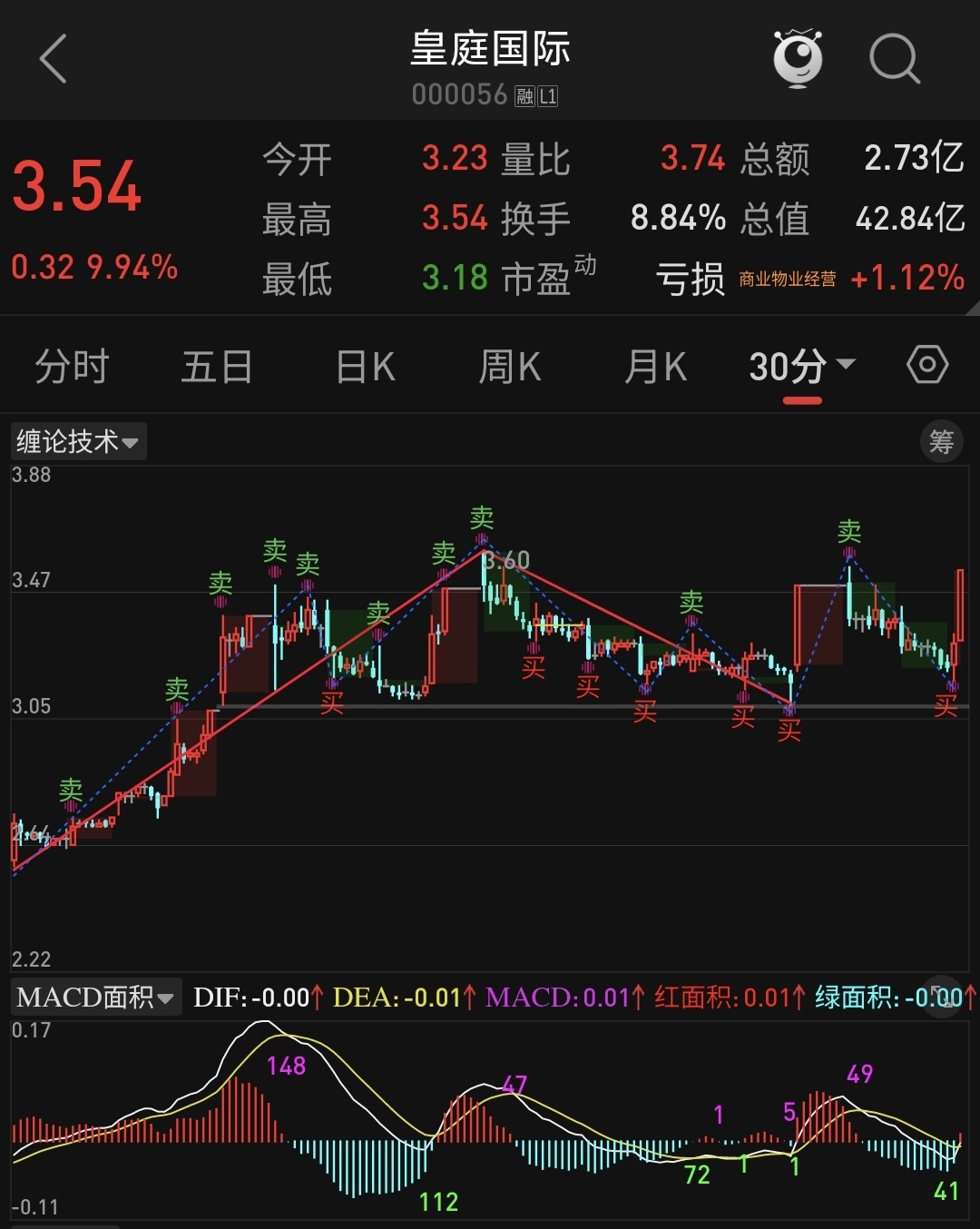 $皇庭国际(SZ000056)$ 有没有可能走30分钟的一个盘整,有可能,但是30分钟盘还需要走1-1.5个月的时间,显然时间上不太可能那么久,而走一个向上的线段是最合理的,参考2021年的月线启动40个点的计算,那么还有三个板的空间,也就是4.7