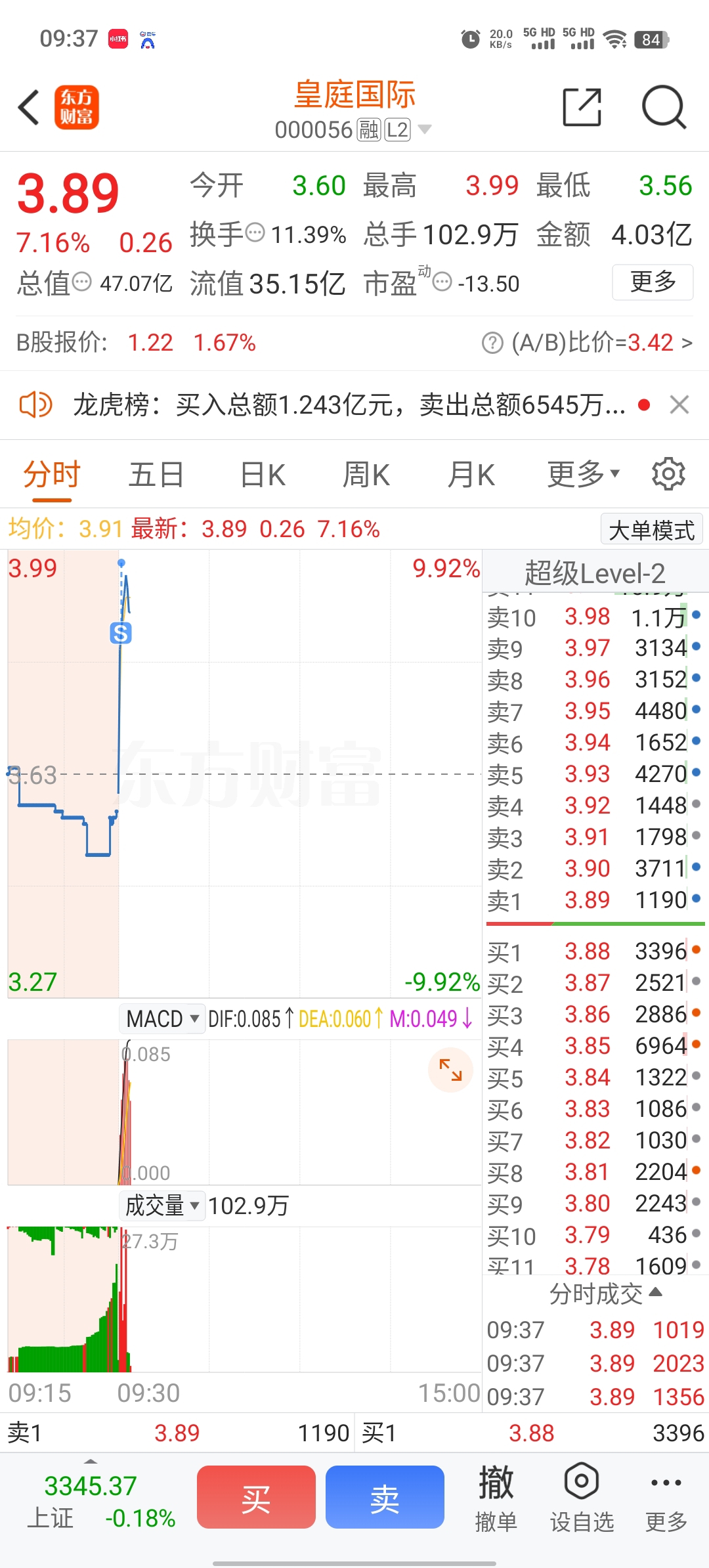 $皇庭国际(SZ000056)$ 感谢主力,一个板我走了
