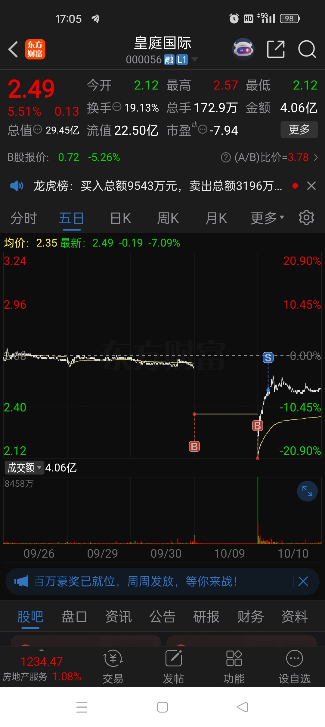 $皇庭国际(SZ000056)$ 别人恐惧我贪婪了