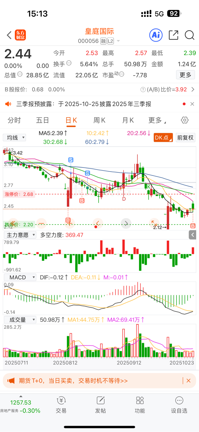 $皇庭国际(SZ000056)$ 尾盘又进来了,明天能吃口肉不