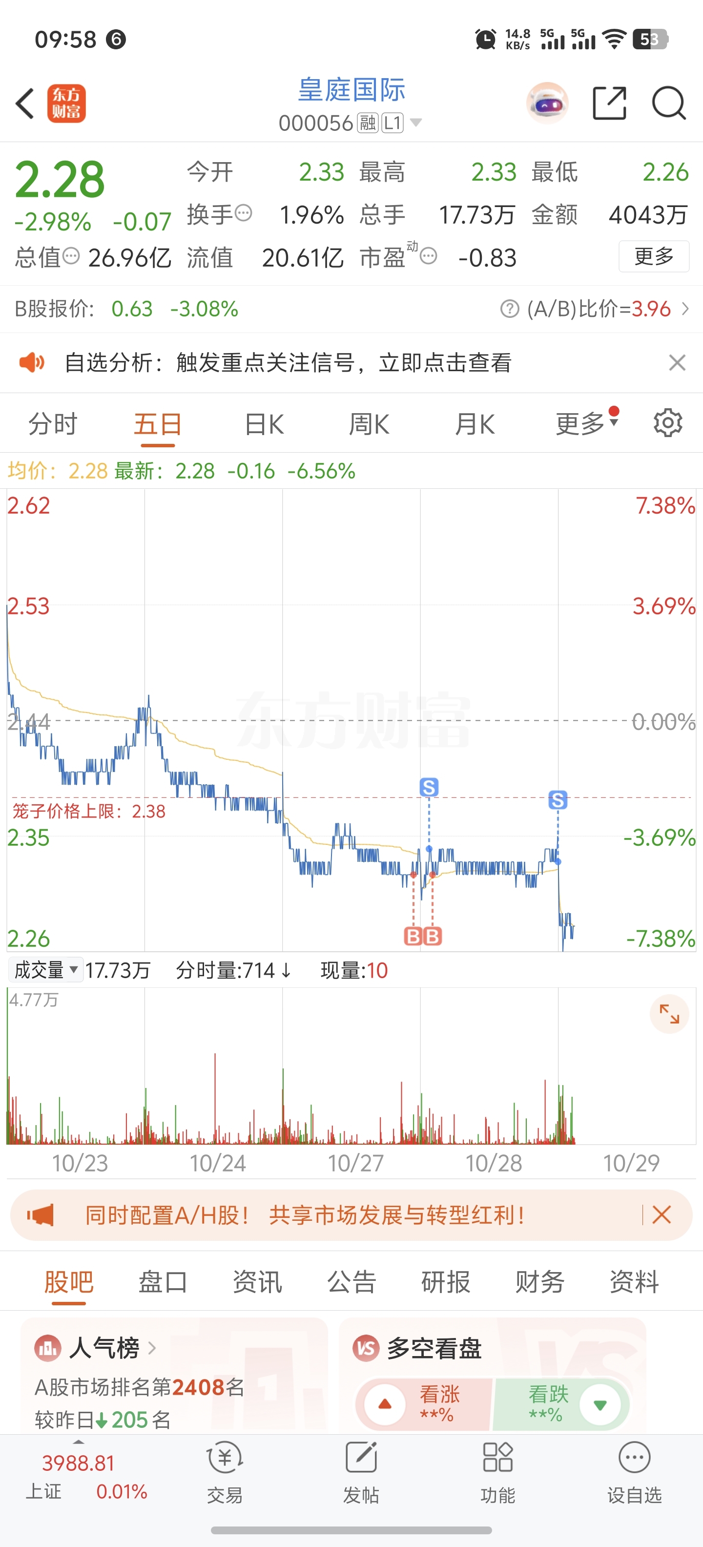 $皇庭国际(SZ000056)$ 不亏钱都不行啊