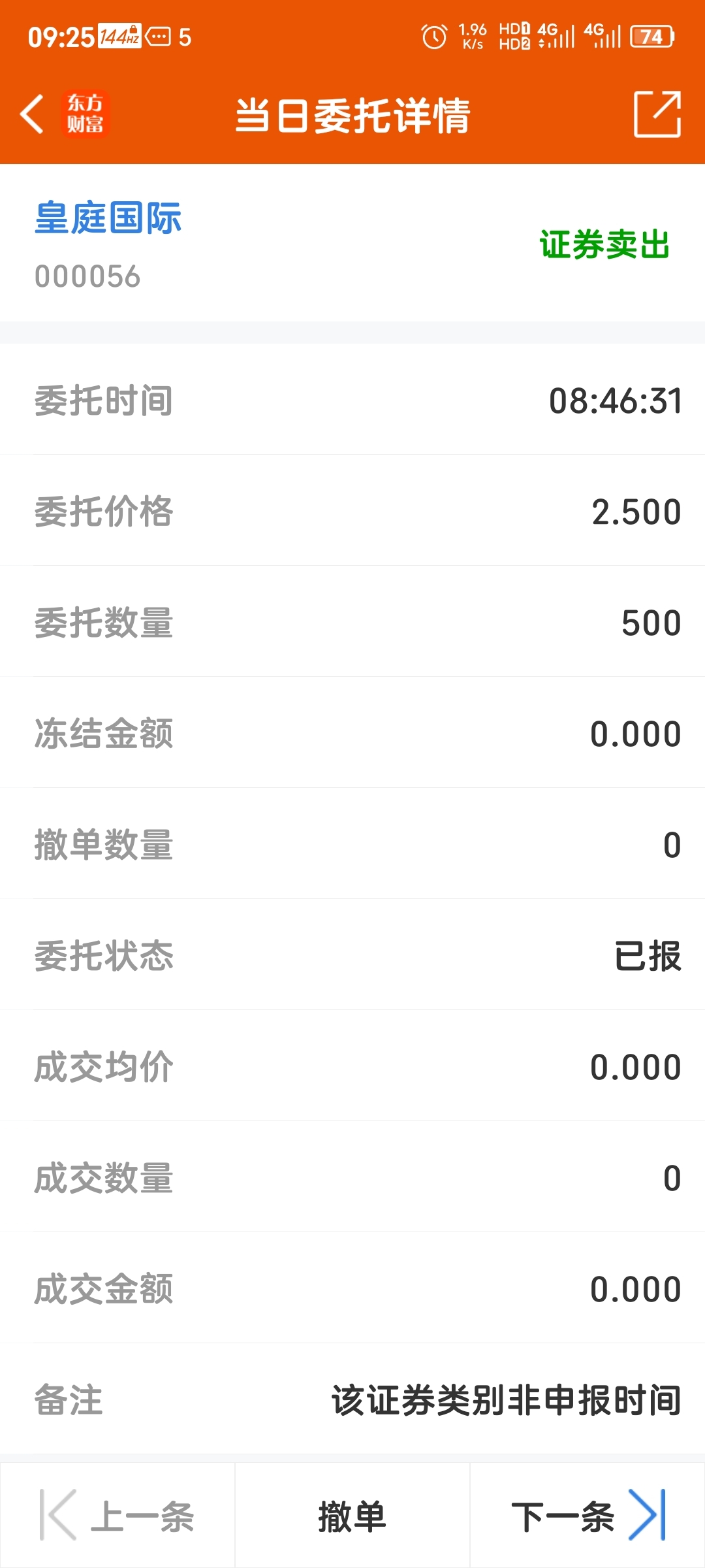 $皇庭国际(SZ000056)$ 一早就报的2.5结果集合竞价没卖出去。