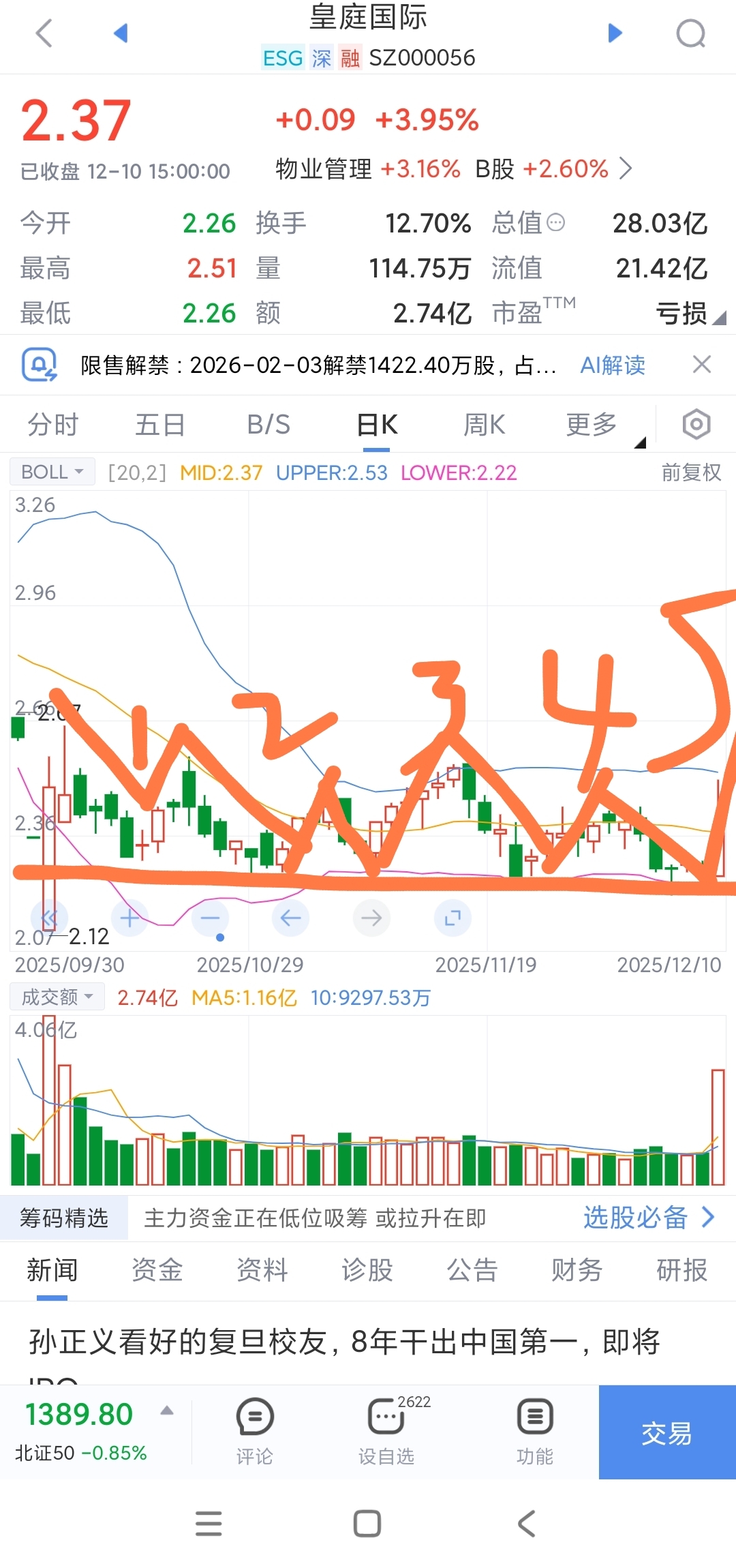 $皇庭国际(SZ000056)$ 守住2.26(收盘价),今年就还有希望回到3块